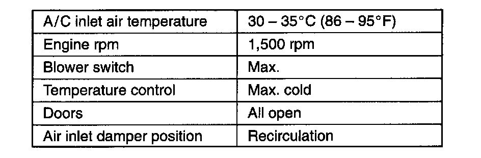 1. Beginning, the manifold gauge pressure values shown have been obtained under conditions listed below. However, keep in mind that the actual on-the-vehicle readings are somewhat affected by the ambient temperature.