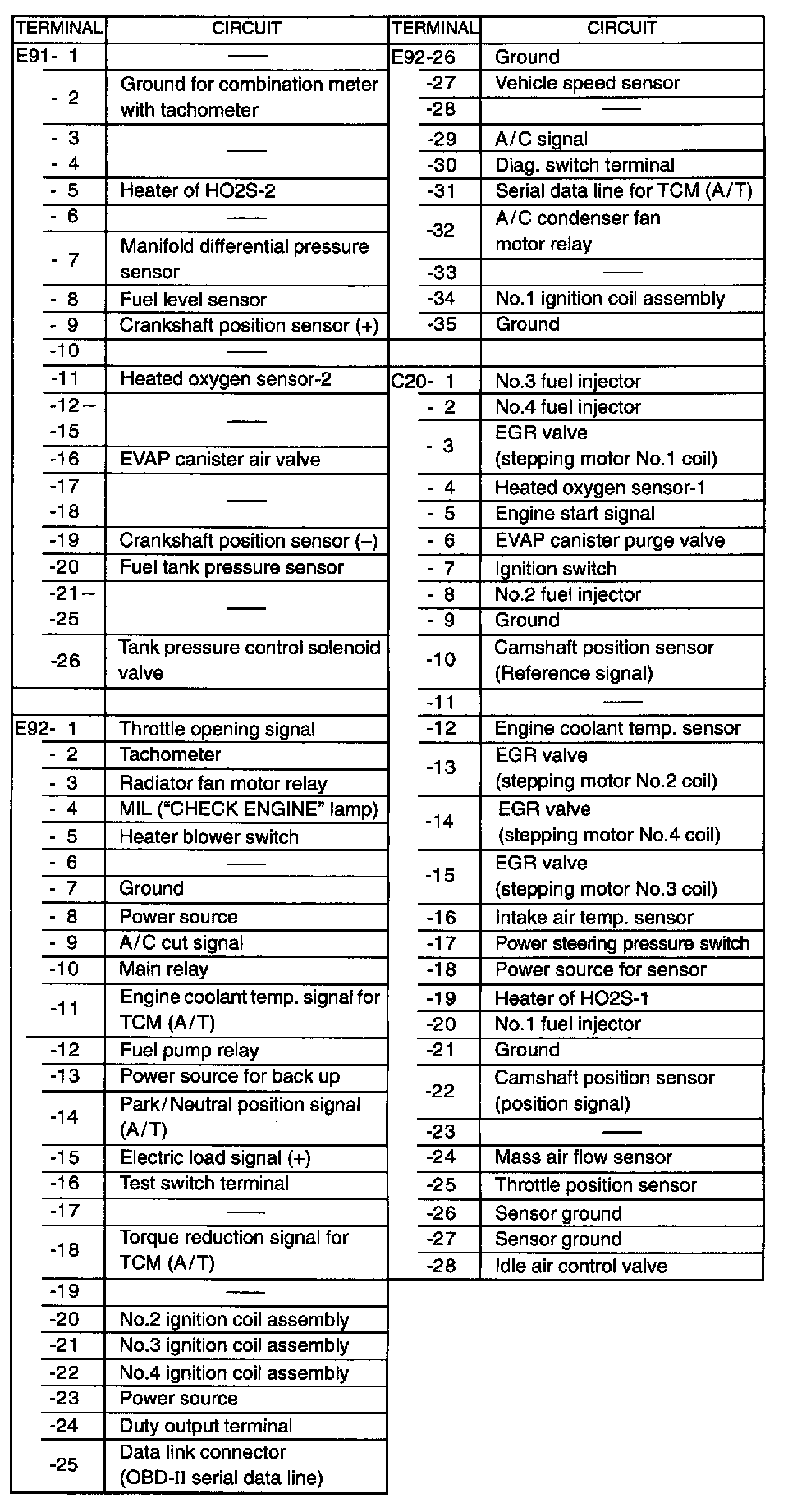 Connectors E91, E92 And C20: