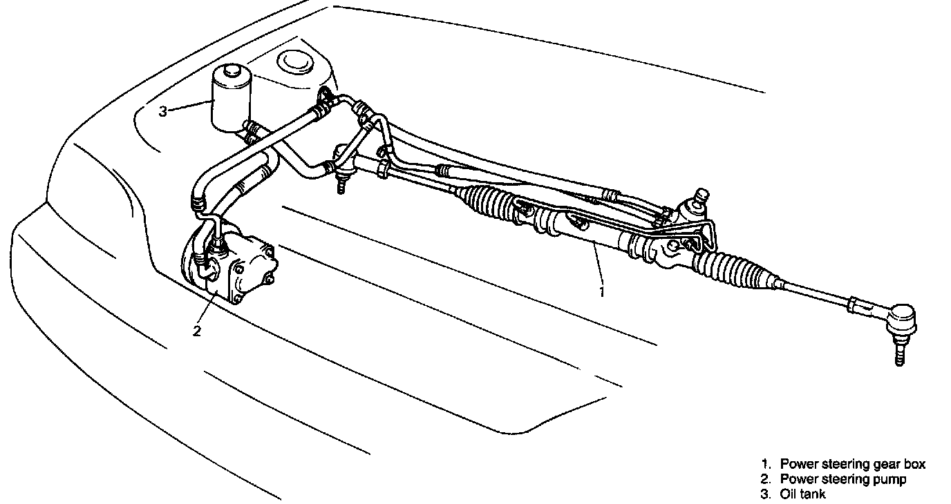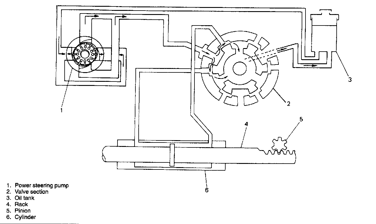 HYDRAULIC POWER STEERINGThe Power Steering (P/S) system in this vehicle reduces the drivers effort needed in turning the steering wheel by utilizing the hydraulic pressure generated by the P/S pump which is driven by the engine. It is an integral type with the rack and pinion gears and the control valve unit, hydraulic pressure cylinder unit all built in the steering gear box.