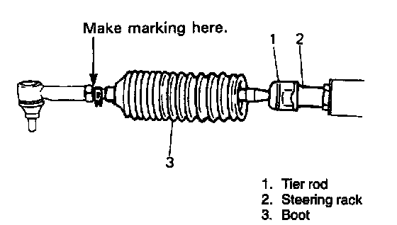 2. For ease of adjustment after installation, make marking of tie rod end lock nut position of tie rod thread.