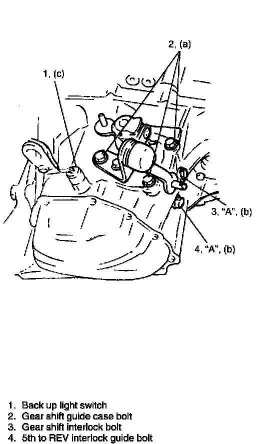 5. Install washer and 5th to REV interlock guide bolt applied with thread lock cement and then tighten it to specified torque.