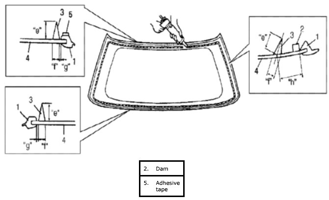 1. Using cleaning solvent, clean surface of adhesive remaining on body (or windshield edge) where windshield glass is to be adhered. (Let it dry for more than 10 minutes)