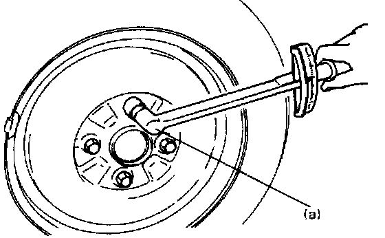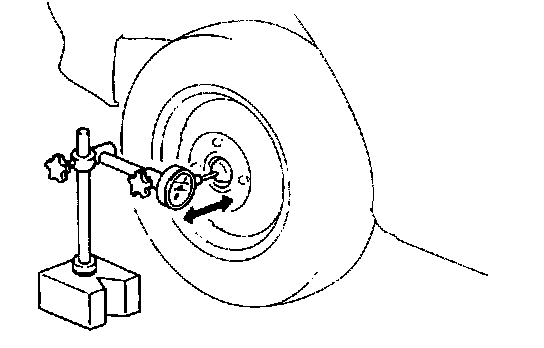 3. Check wheel bearing for wear. When measuring thrust play, apply a dial gauge to wheel hub.
