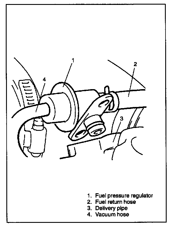 4. Disconnect fuel return hose and vacuum hose from pressure regulator.