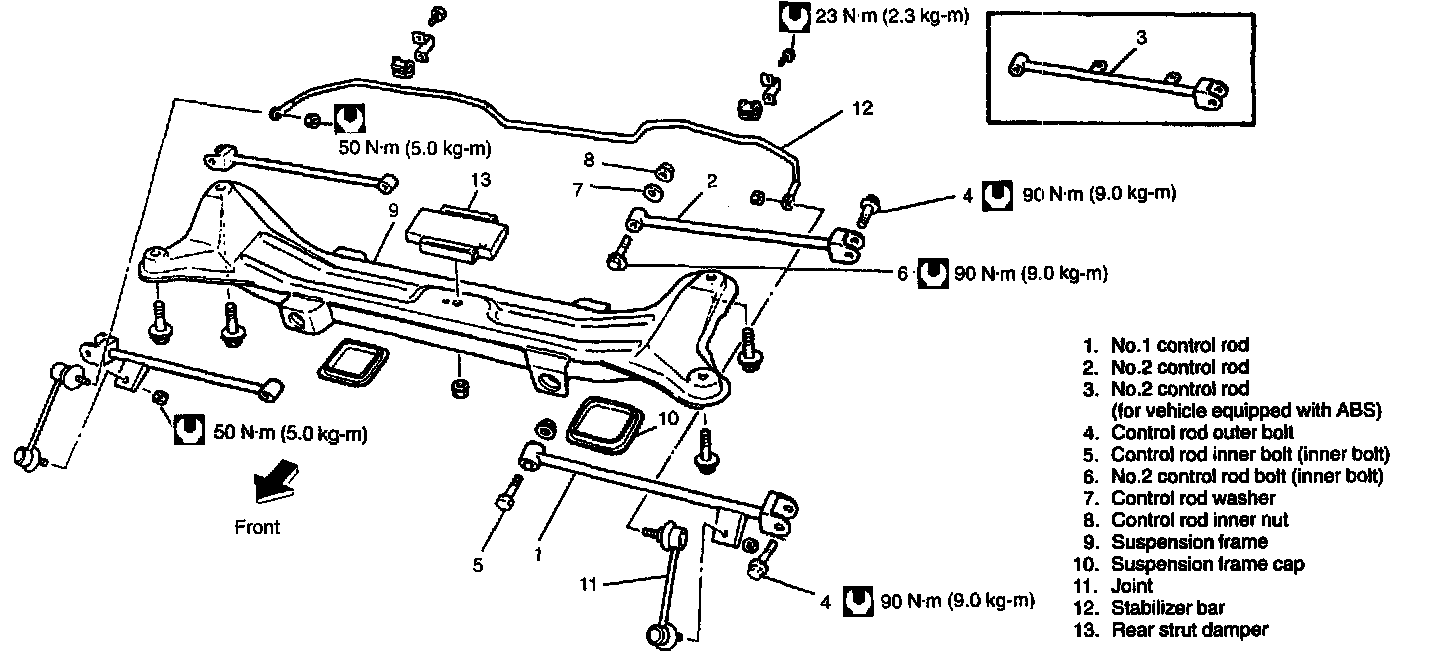 6. Remove No.2 control rod from suspension frame and knuckle.