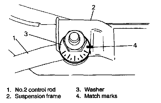 4. To facilitate toe adjustment after reinstallation, put match marks on washer and on suspension frame.