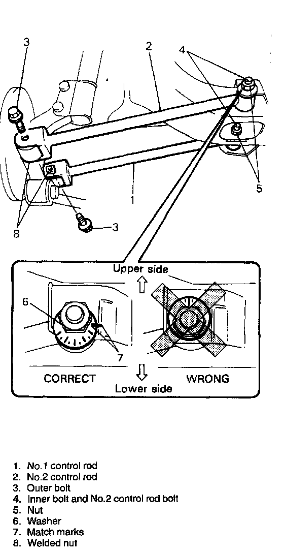 1. Install No.1 control rod, setting it so that its welded nut comes toward the rear.