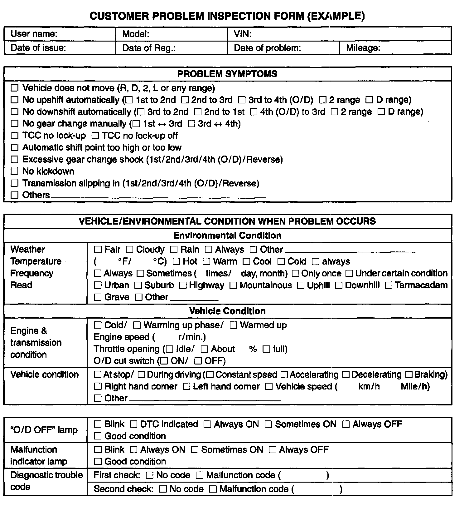 CUSTOMER PROBLEM INSPECTION FORM (EXAMPLE)
