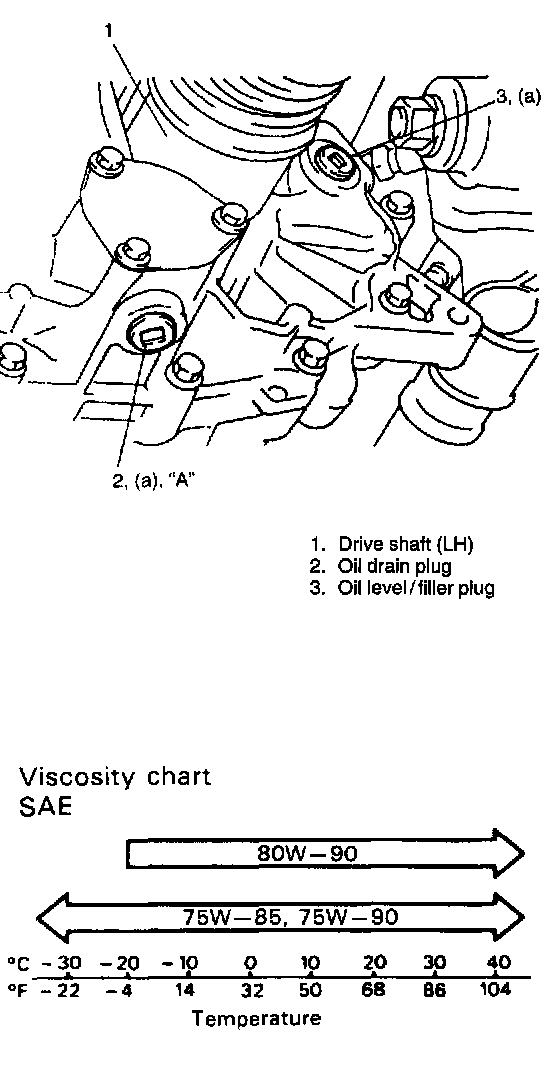 2. With vehicle lifted up, check oil level and leakage. If leakage exists, correct it.