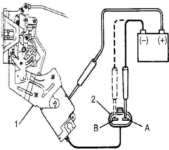 3. Actuator is proved to be operating properly if (-) cord connection to terminal "A" results in "Lock" and its connection to terminal "B" results in "Unlock".