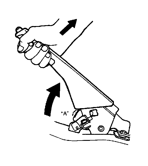 With parking brake lever pulled up as above, count ratchet notches in "A" as shown in figure.