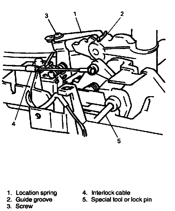 NOTE: New shift lock solenoid assembly is supplied with held key release cam at key interlock cable connecting position with lock pin. Do not remove lock pin in this step.
