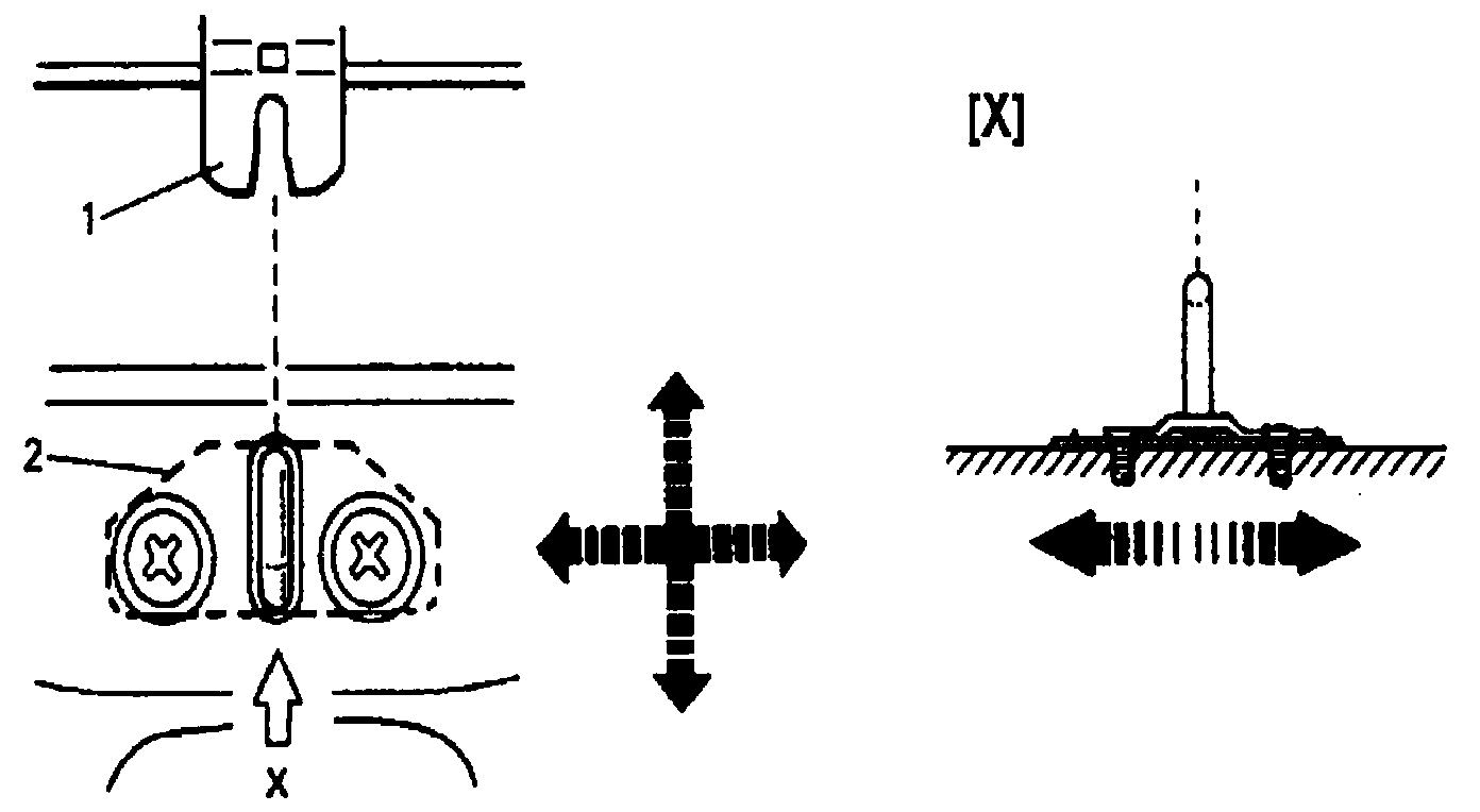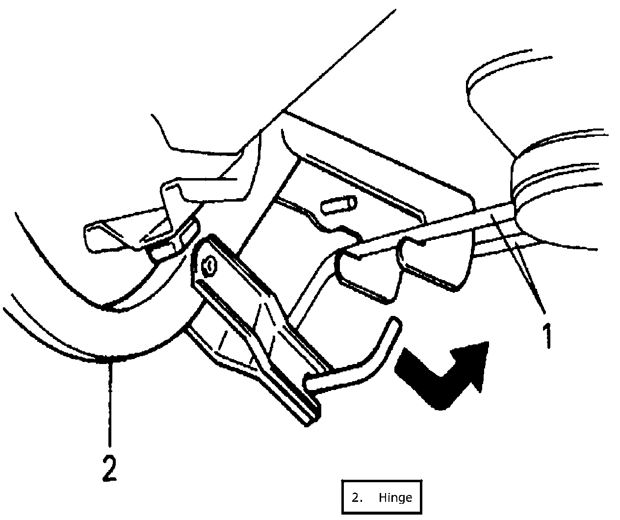 - Adjust trunk lid latch striker (2) so that striker shaft approximately aligns with the center of groove of trunk lid latch (1).