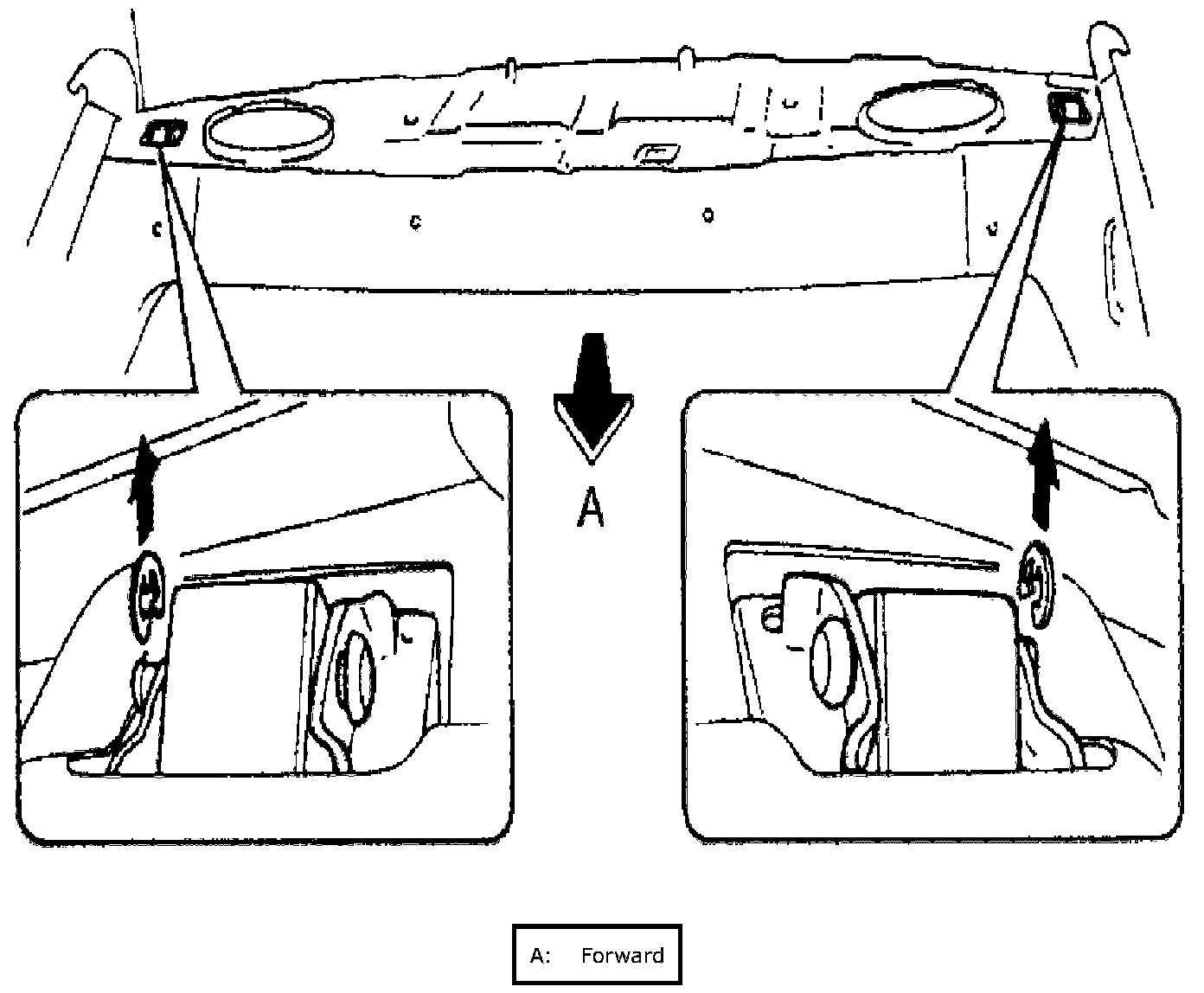 1. Remove trunk lid opener wire and trunk room harness from trunk lid panel.