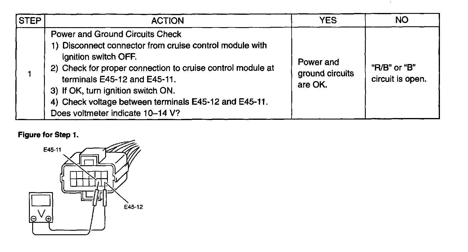 Cruise Control Module Power and Ground Circuits Check (Step 1):