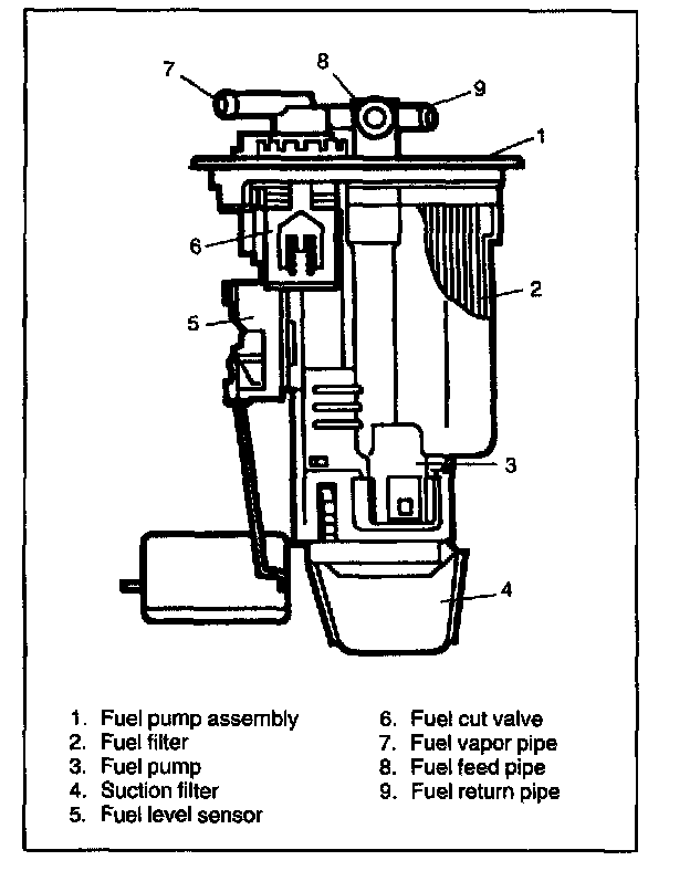 The fuel pump assembly consists of fuel pump, fuel filter (for Type A), fuel level sensor and fuel cut valve.