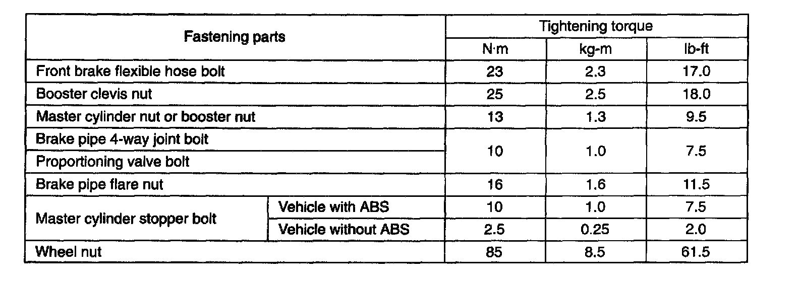Tightening Torques