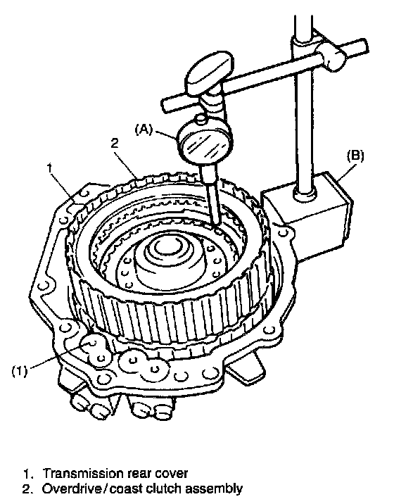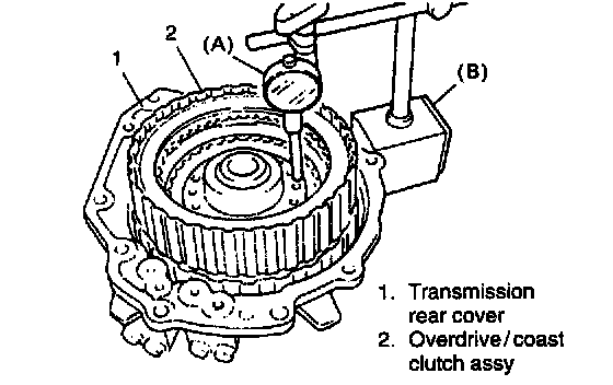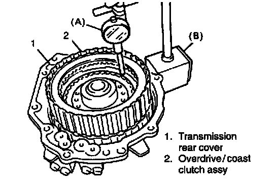 1. Measure piston stroke. Install forward clutch assembly and overdrive/coast clutch assembly to transmission rear cover.