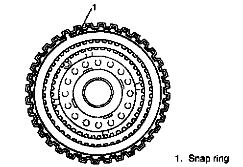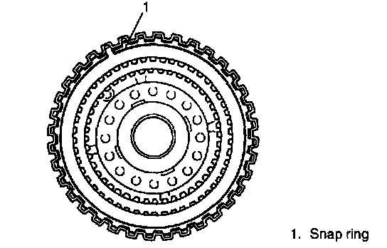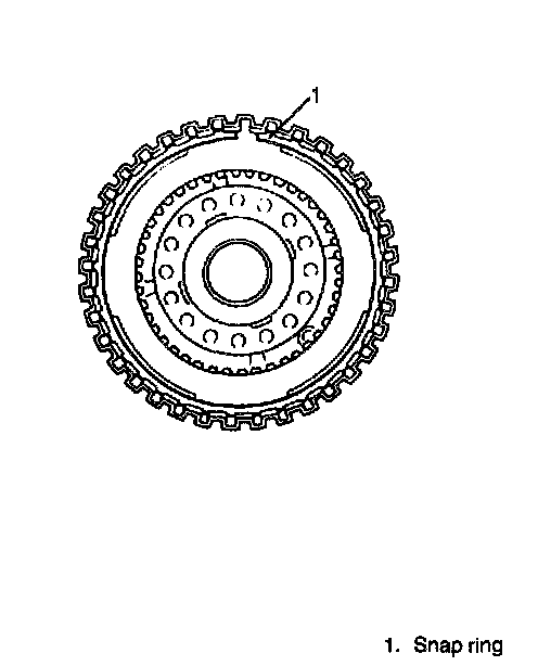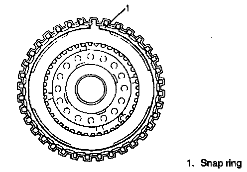 ^ Do not align opening in snap ring with lug of overdrive clutch return spring at its retainer section.