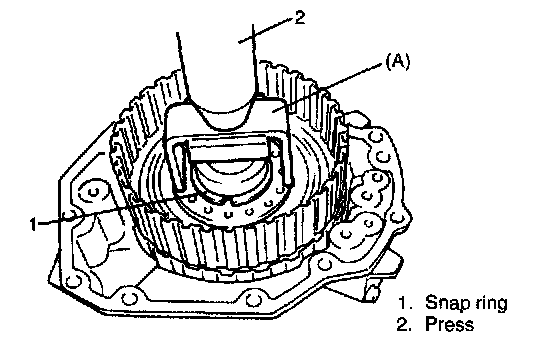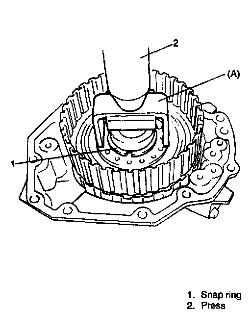 3. Using special tool and hydraulic press, compress overdrive clutch return spring and remove snap ring.