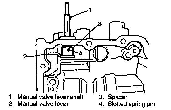 4. Install new spacer and manual valve lever to manual valve lever shaft.