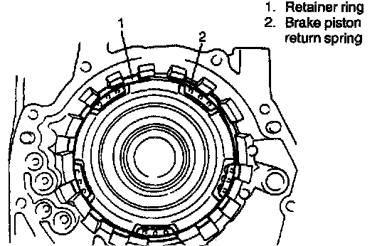 13. Install retainer ring by compressing brake piston return spring with flat drivers or the like.