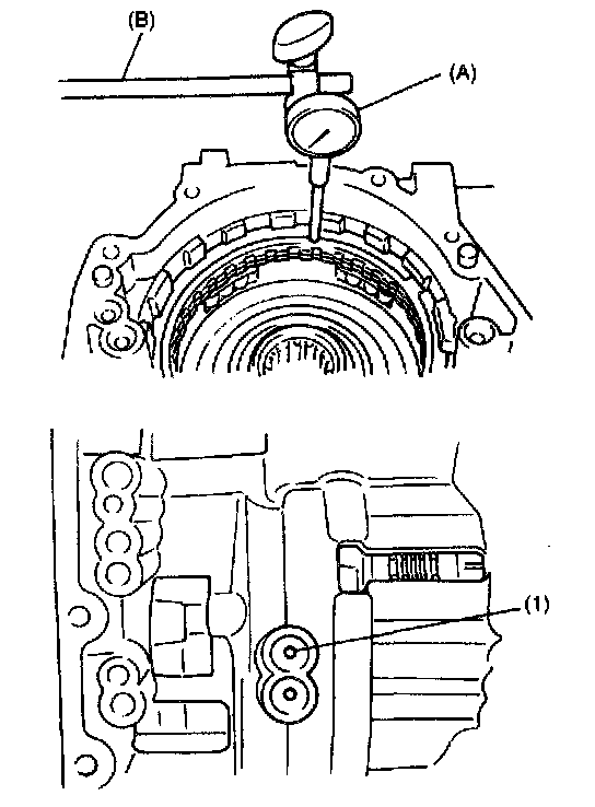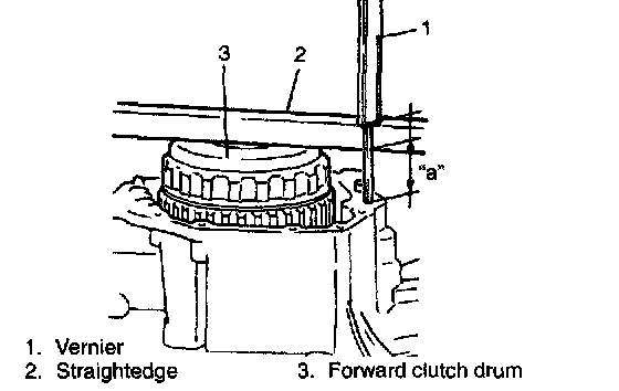 Measure the distance "a" by using vernier and straightedge. If out of specification, remove forward clutch, overdrive/coast clutch, front and rear planetary carrier and reinstall them properly