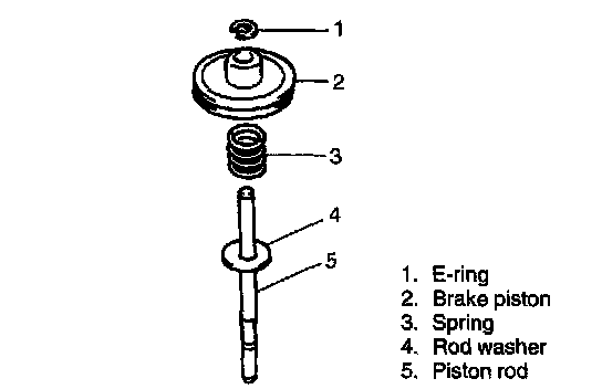 a. Install rod washer, spring, brake piston and new E-ring to brake piston rod.