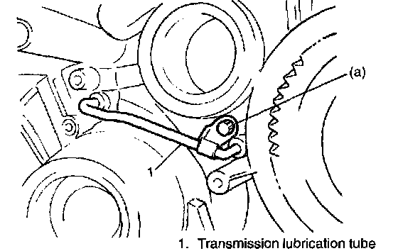 28. Install transmission lubrication tube.