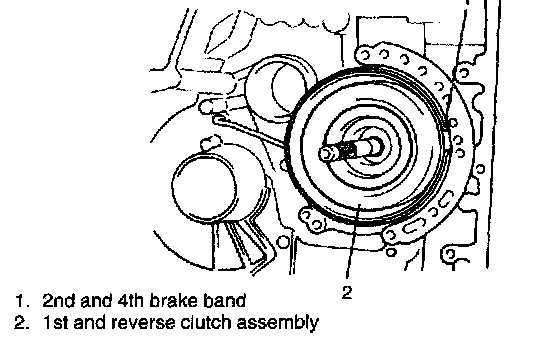 47. Remove oil pump body, 1st and reverse clutch and 2nd and 4th brake band from transmission case.