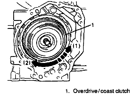 NOTE: Check to make sure that overdrive/coast clutch locks when turned counterclockwise (1) and moves freely when turned clockwise (2).