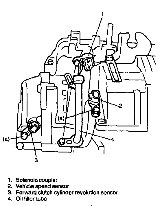 ^ Check to make sure that couplers are connected properly (No. 1 shift solenoid-white, No. 2 shift solenoid-blue and lock-up control solenoid-yellow).