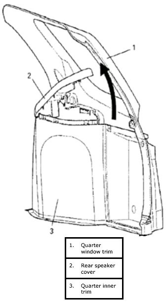2. Lift up rear end of speaker cover and remove it from quarter glass trim.