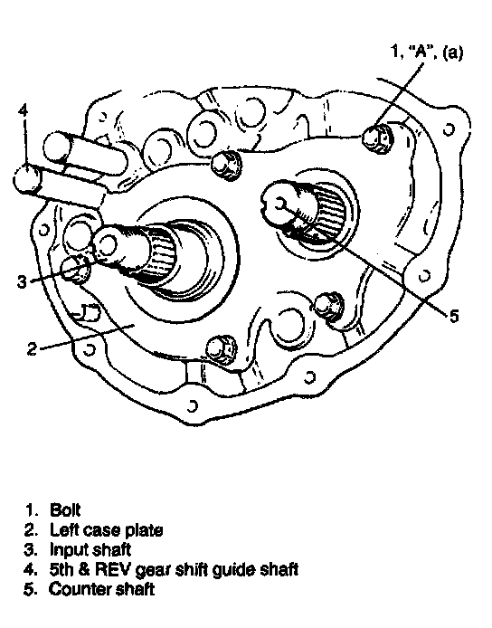5. Install counter shaft 5th gear to counter shaft facing machined boss A inward.
