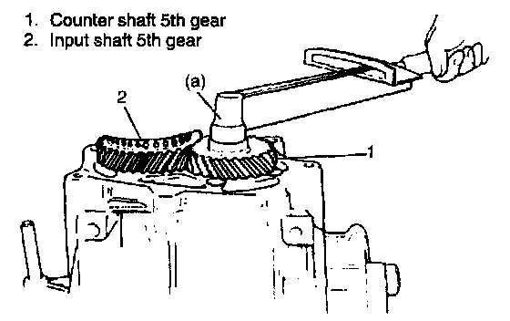 7. Engage gear double meshing to tighten counter shaft nut and tighten it to specified torque.