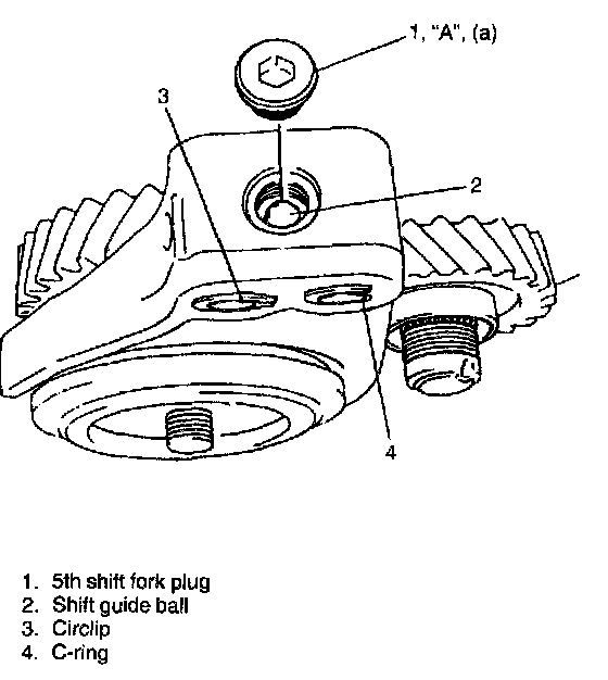 ^ Coat shift fork plug with tread lock cement reasonably. If it is done too much, excess coating may interfere in ball movement and cause hard shift to 5th speed.