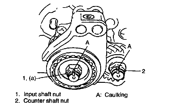 15. Caulk input shaft nut and counter shaft nut with caulking tool.