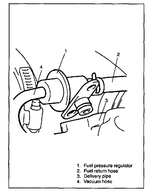 4. Disconnect fuel return hose and vacuum hose from pressure regulator.