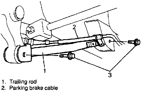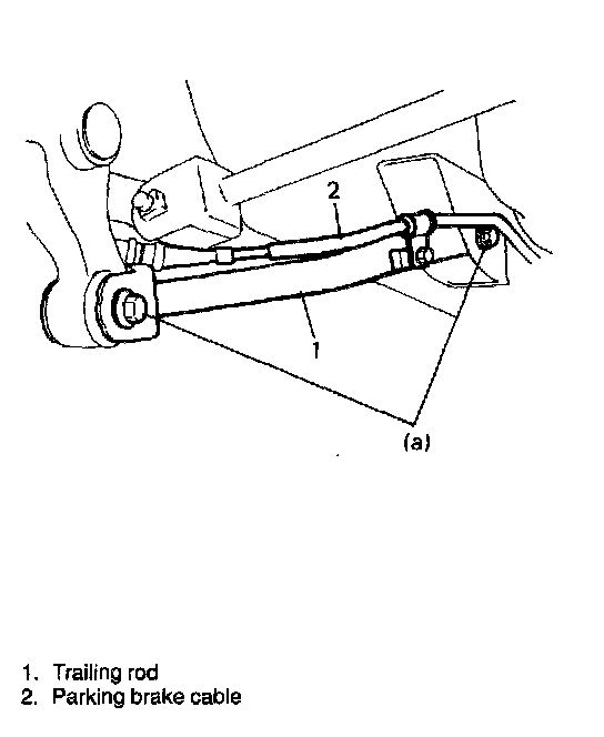 2. Detach parking brake cable clamp from trailing rod.