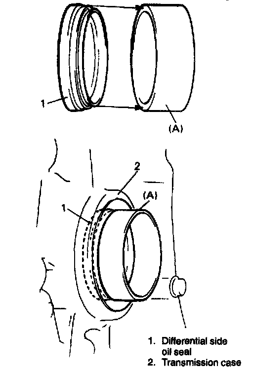 NOTE: For oil seal installation, press-fit oil seal so that transmission case end face is flush with oil seal end face.