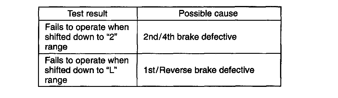 2. In the same way as in Step 1), check engine brake for operation when select lever is shifted down to "L" range.