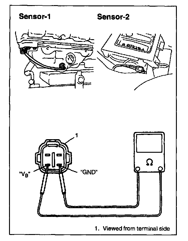 3. Using ohmmeter, measure resistance between terminals "VB" and GND" of sensor coupler.