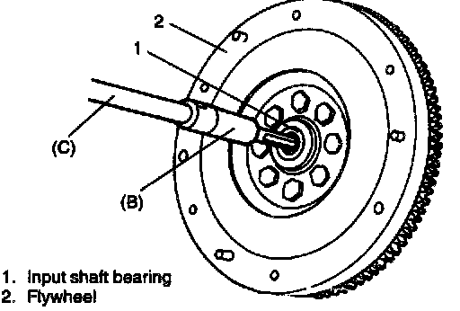 2. Using special tool, install input shaft bearing to flywheel.