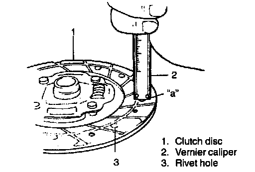 If depression is found to have reached service limit at any of holes, replace disc assembly.