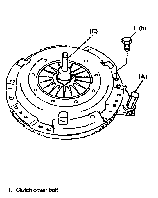 1. Hold flywheel stationary with special tool and remove clutch cover bolts, clutch cover and clutch disc.