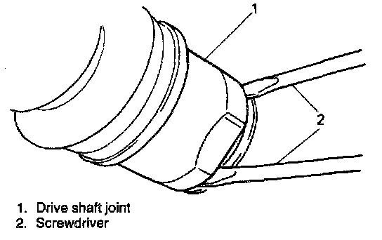 19. By using large size screwdriver, pull out drive shaft joints at differential side so as to release snap ring fitting.