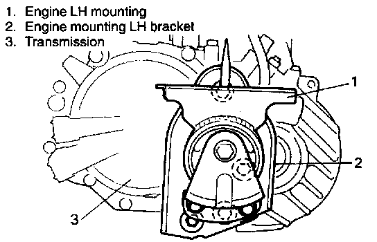 27. Remove engine LH mounting and its bracket from transmission case.