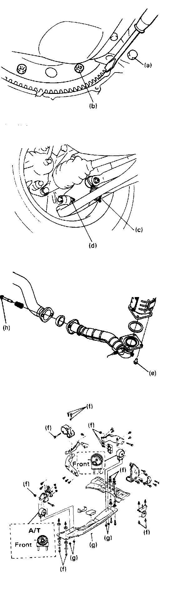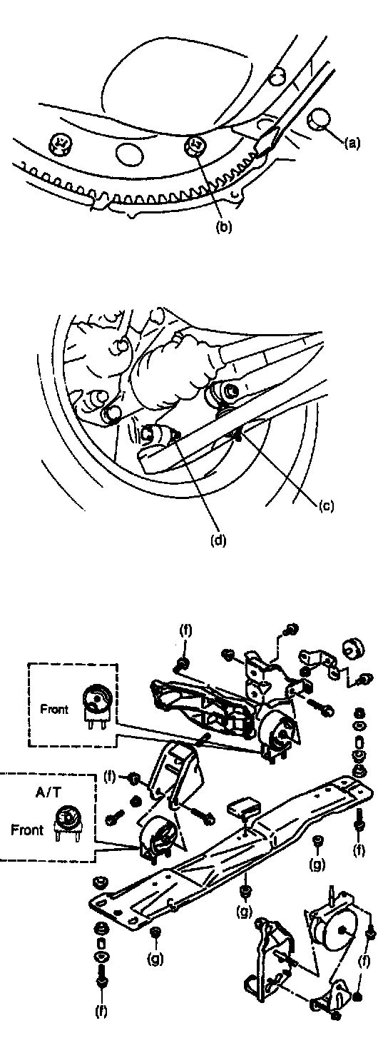 19. Remove engine rear mounting and its bracket bolts at transmission case.