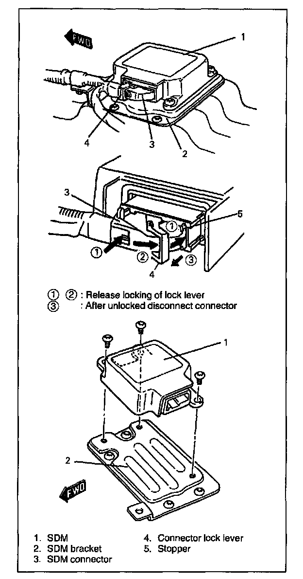 6. Remove SDM and SDM bracket from vehicle.
