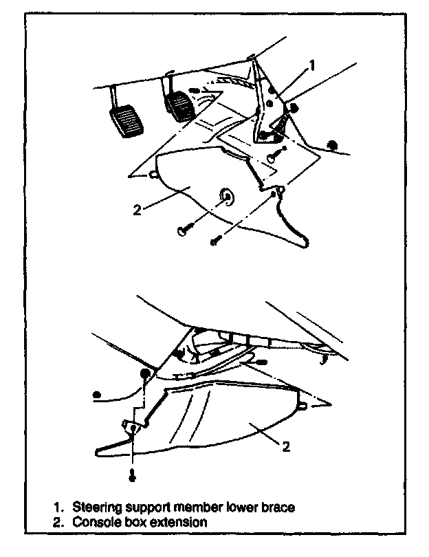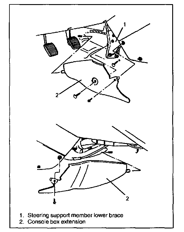 4. Remove 4 bolts and steering support member lower brace.
